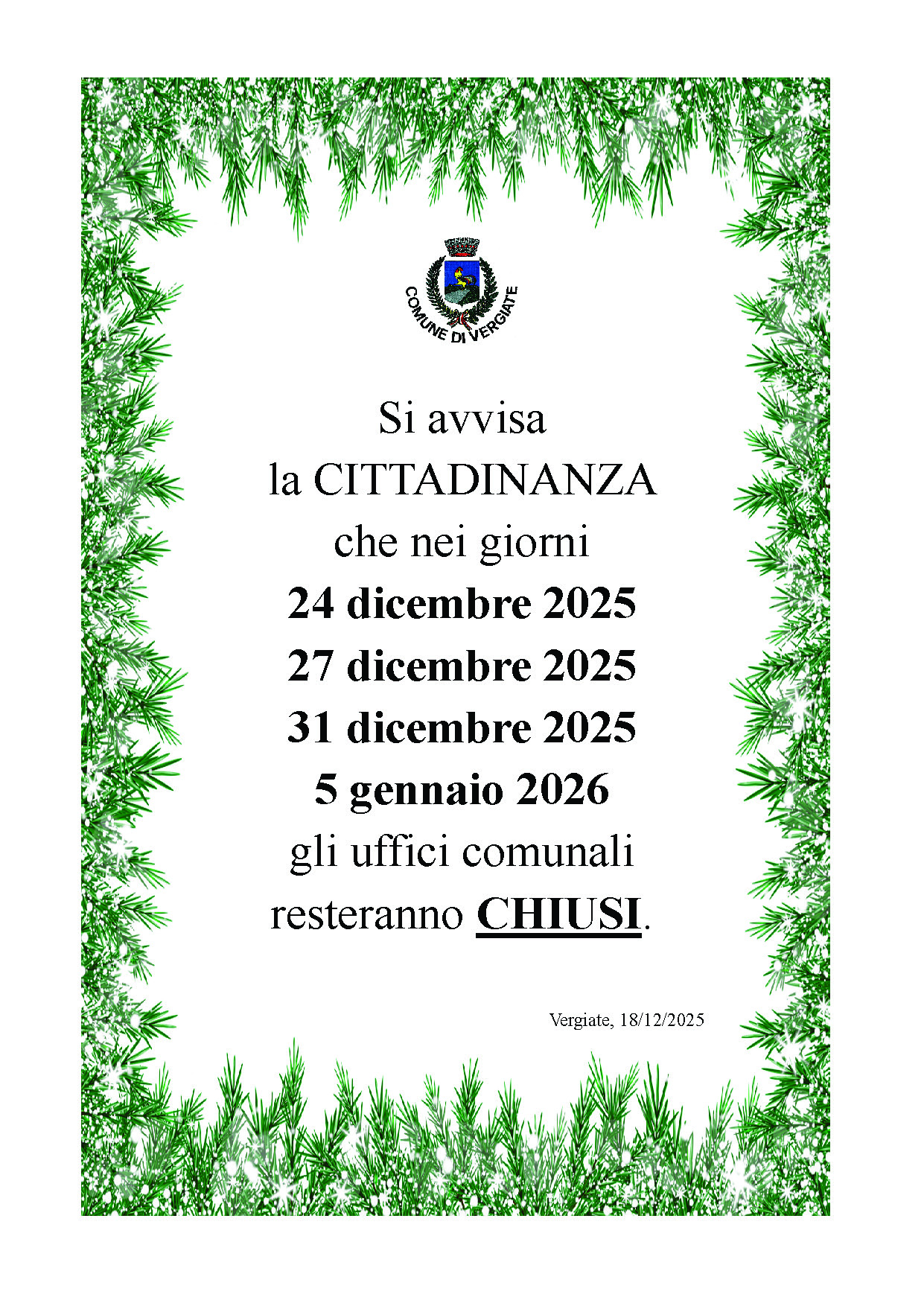 ESCLUSIVAMENTE NELLE GIORNATE DI SABATO 27/12/2025 LUNEDI' 05/01/2026