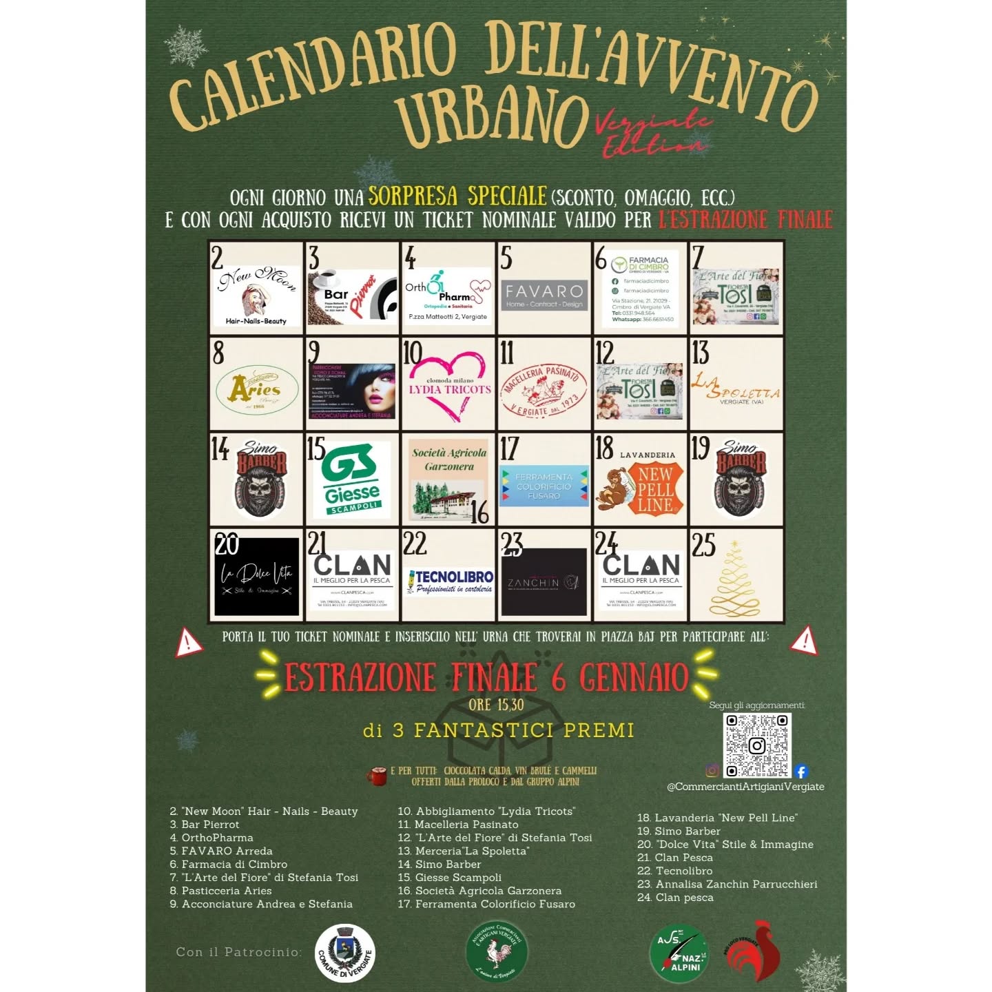 Dopo il grande successo della prima edizione, l’Associazione Commercianti e Artigiani di Vergiate (C.A.V.), con il patrocinio del Comune di Vergiate, annuncia il ritorno dell’iniziativa natalizia più attesa: il “Calendario dell’Avvento Urbano”.